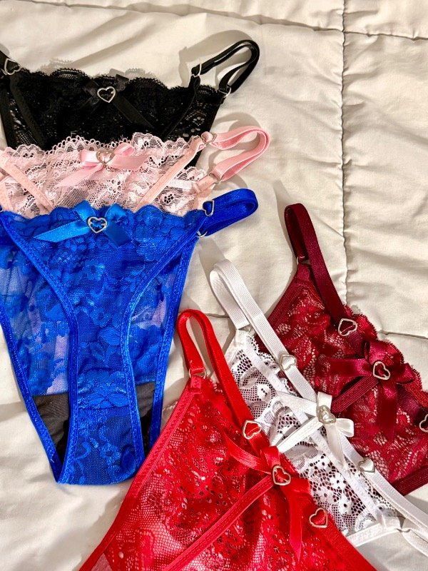 Bombi de puntilla, regulable, con detalles de corazones y moño. Cómodo, sensual y de producción propia.